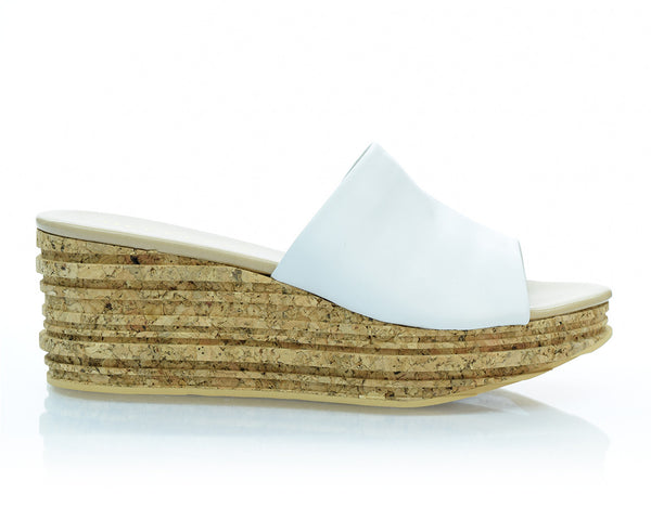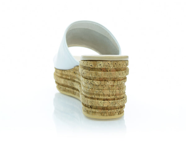 This white wedge is so comfy you'll want to wear it every day. The wide white leather strap hugs your foot and really pops against the textured cork 3" wedge.
