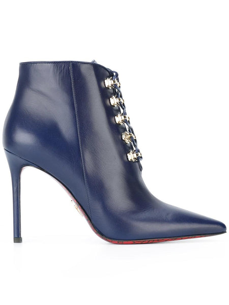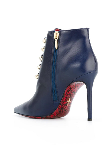 Take these super chic 'n stylish booties from Cesare Paciotti home with you! The rich royal blue color is eye catching, and the fierce gold lace up hardware makes these shoes stand out in the best way possible.