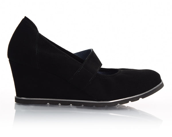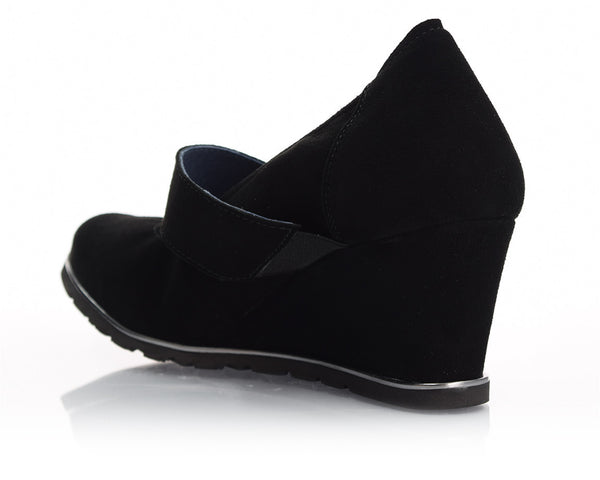 This wedge from Sabrina is the most comfortable wedge you will find around! Not only is it comfortable but it is stylish, too, with its black suede and silver piping finish around the sole.